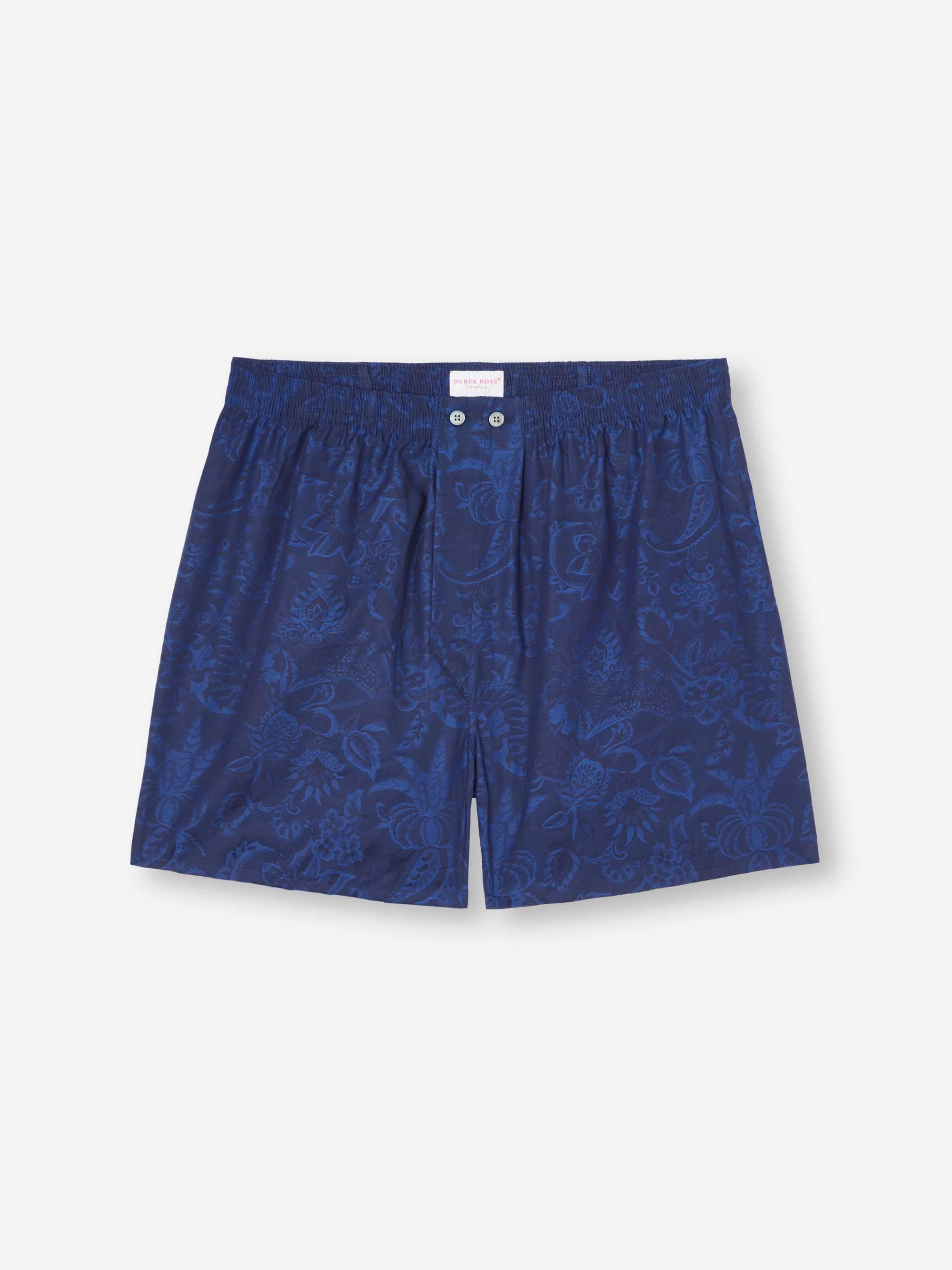 Men's Classic Fit Boxers Cotton Jacquard Navy Jungle Paisley Pattern