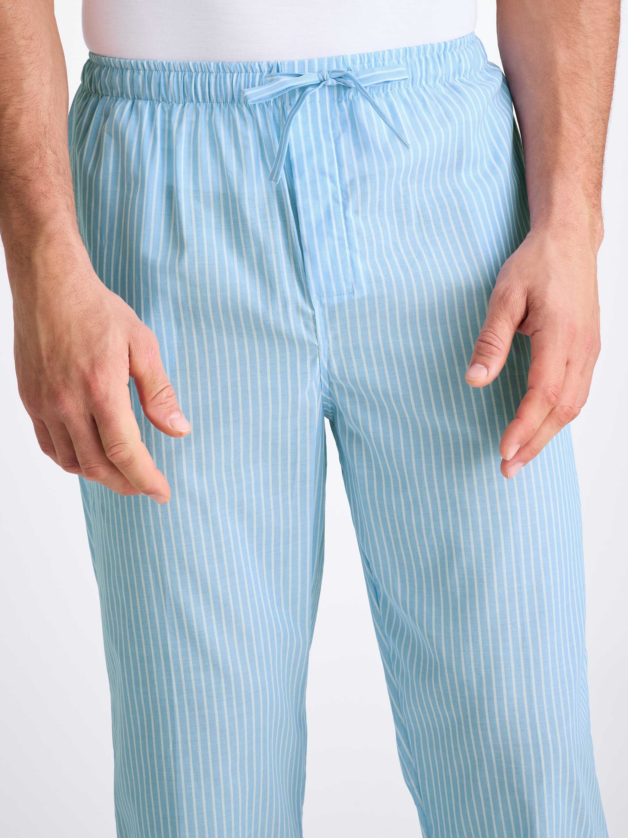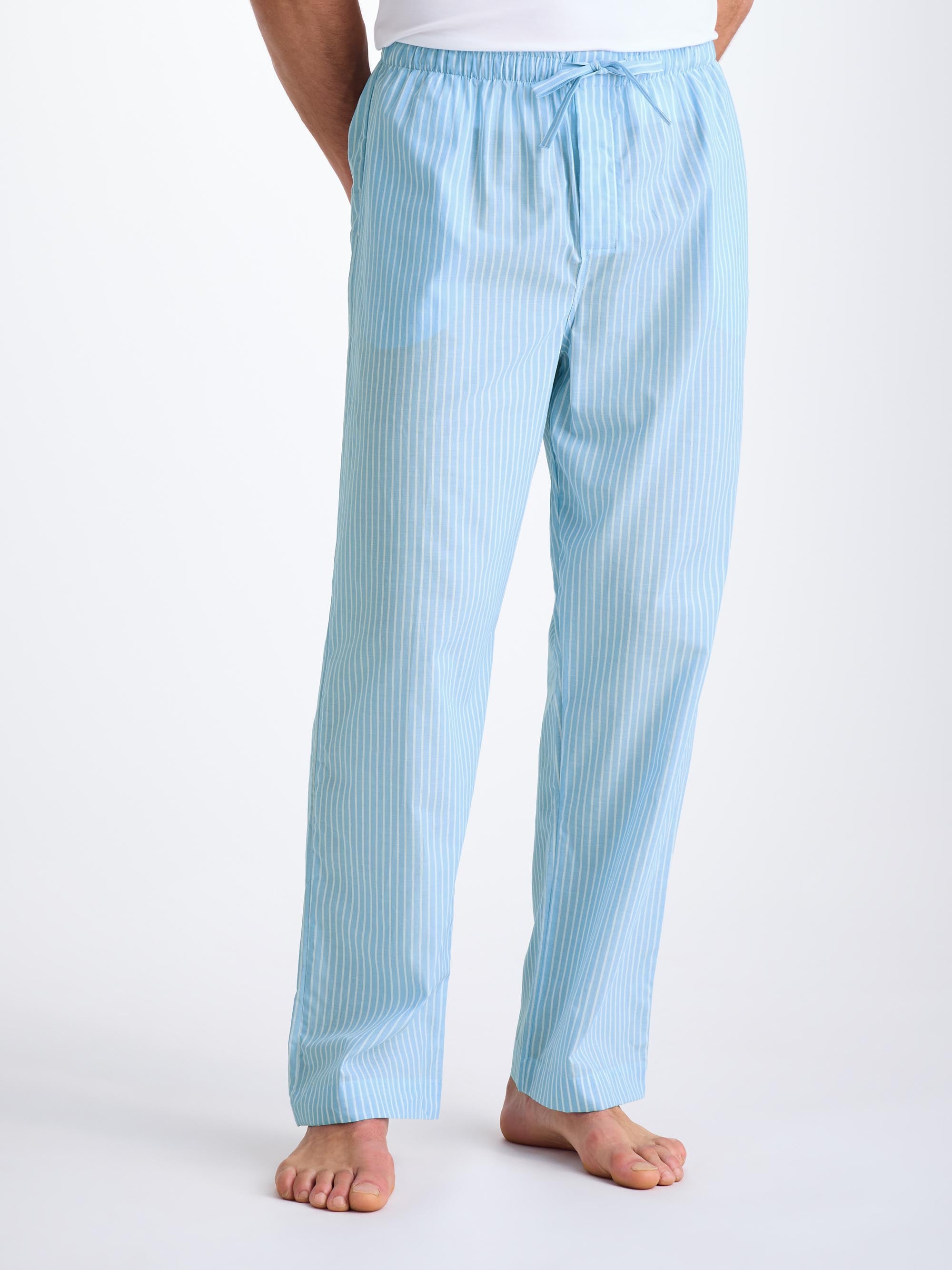 Featuring a relaxed fit that's ideal for comfort and ease of movement, it has a single breast pocket, classic flat collar, button-through top, adjustable two-button elasticated waist and, of course, short sleeves and bottoms. Find our latest Amalfi in a fresh blue and white stripe.
